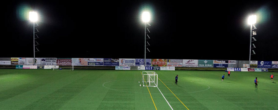 Beleuchtung eines Spielfeldes in Zamora, Spanien.