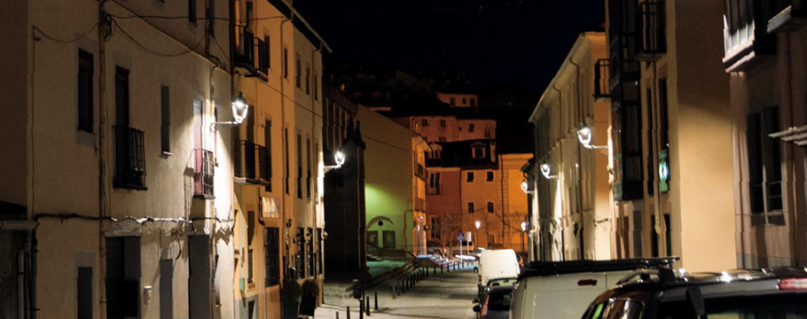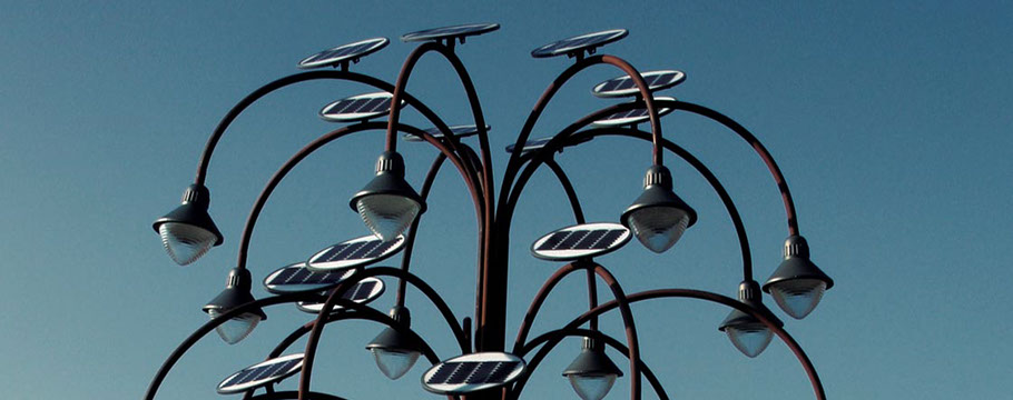 MicroLEDs an einer Straßenlaterne. Betrieben durch Solarstrom.