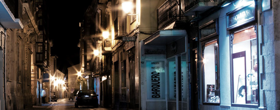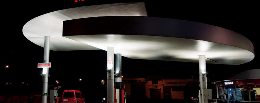 Beleuchtung einer Tankstelle in Zamora, Spanien.